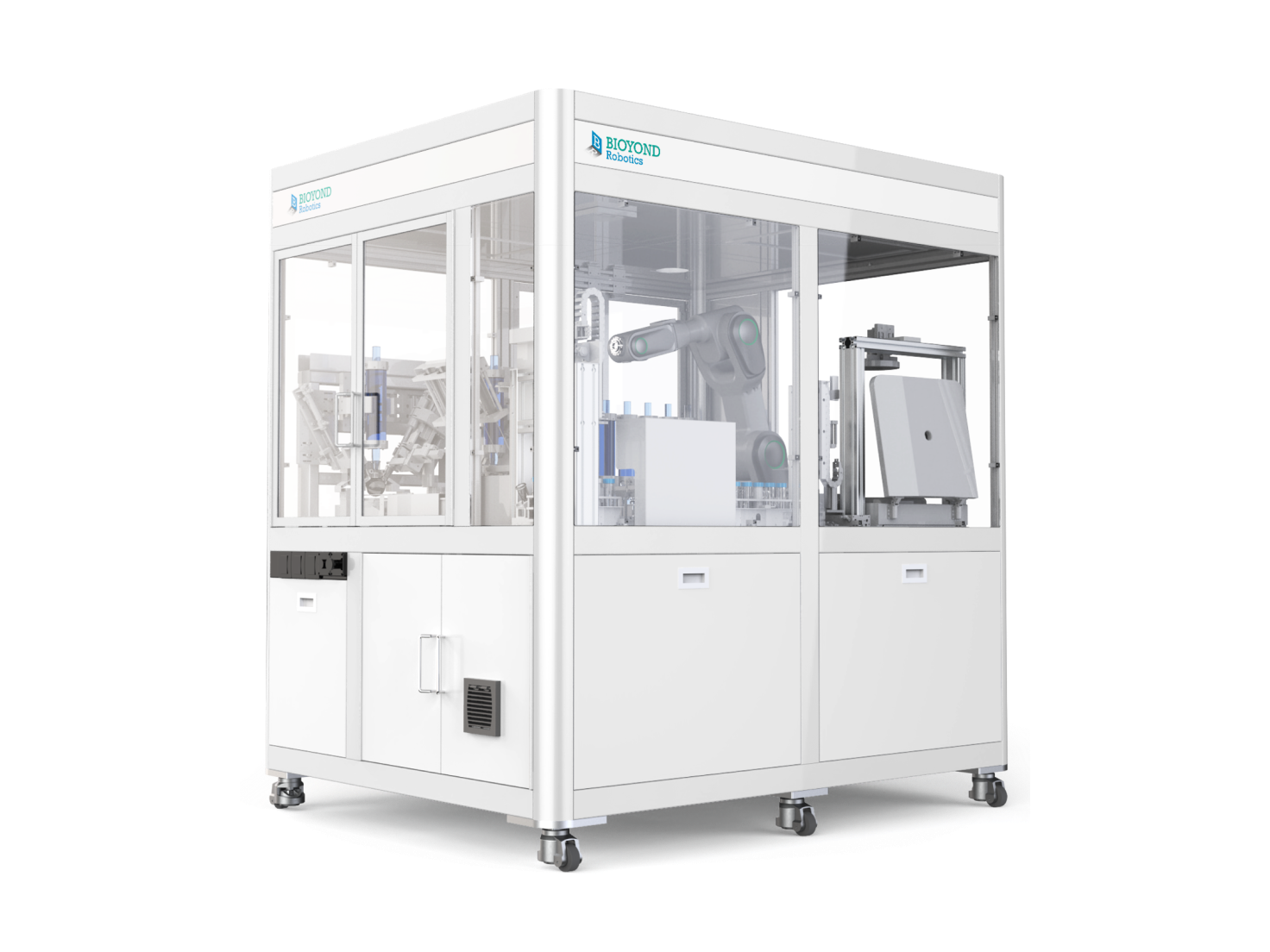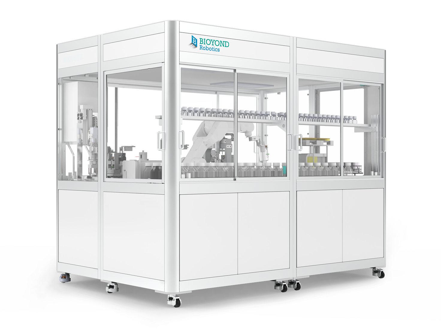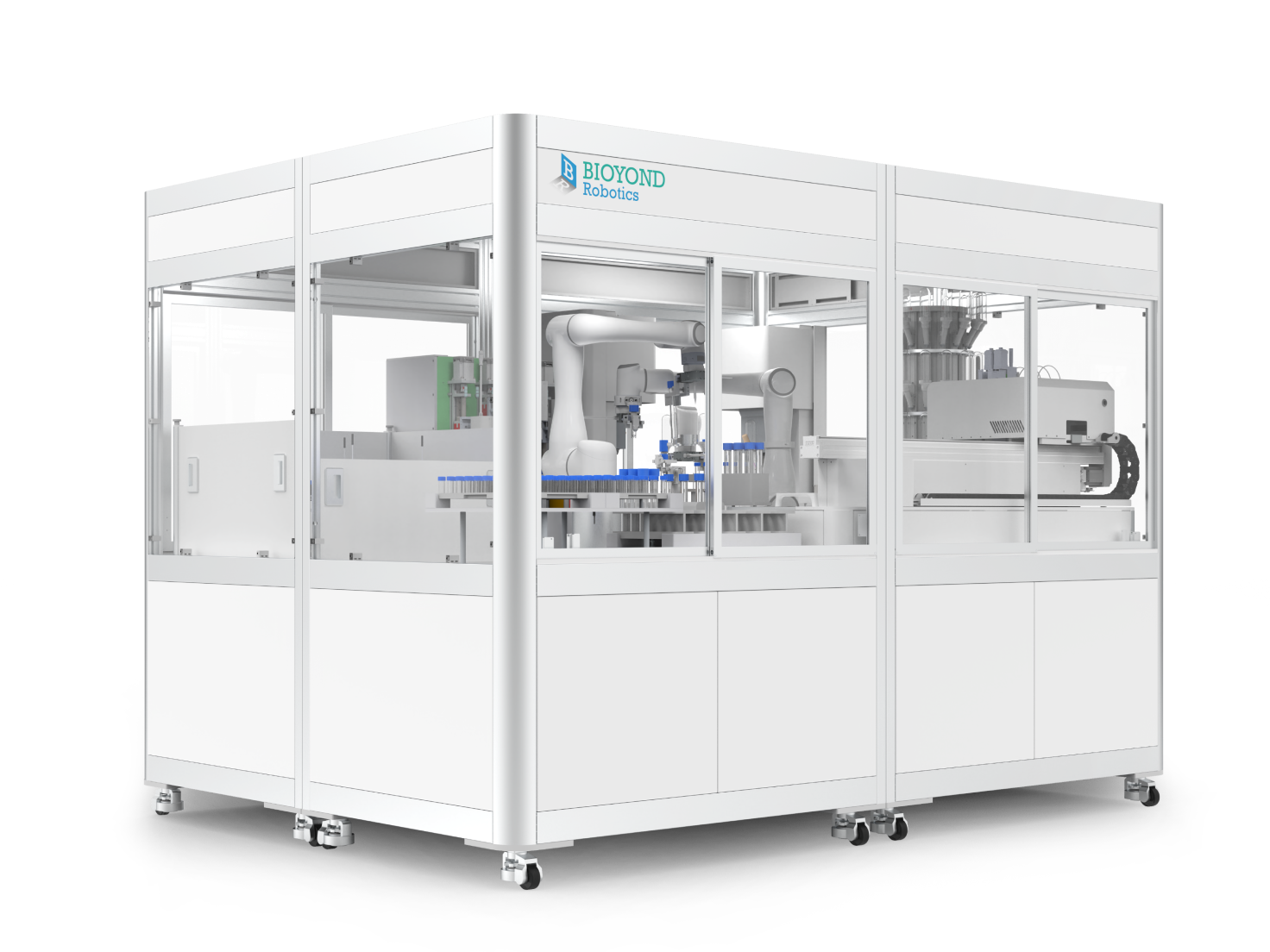 粉末称量助手由称量模块、机器人转运模块、容器储存模块、加样头储存模块组成,可以实现高精度粉末称量功能,提供长时间无人值守。