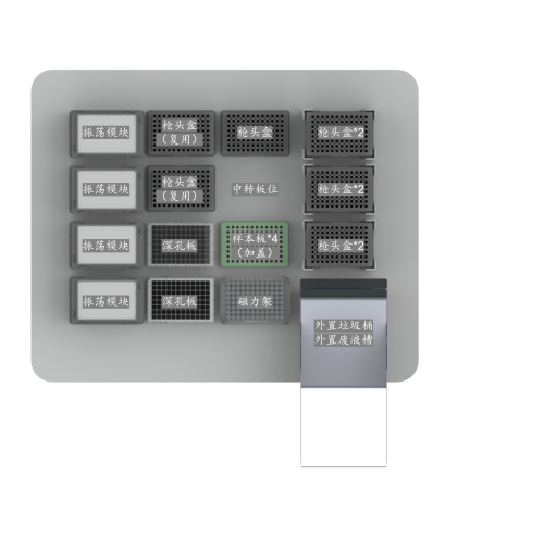 视觉台面监测 – 提供视觉台面监测功能,通过高精度的视觉识别技术,设备能够迅速识别耗材的类型、位置和状态,为用户提供直观的反馈和提示,避免因放错耗材而导致的实验失败。