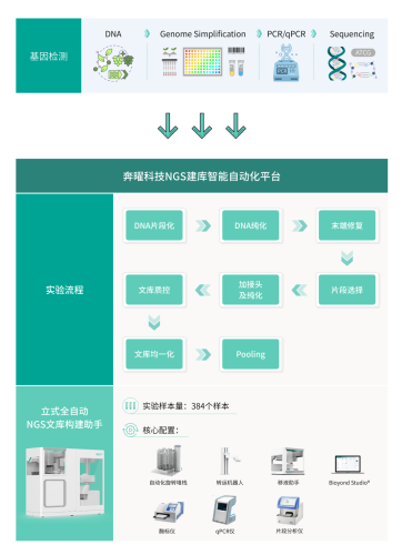 奔曜科技为全基因组扫描提供NGS建库智能自动化平台。该平台通过模块化设备集群与智能流程控制系统的深度协同,实现了从样本前处理到标准化文库制备的全流程自动化,为大规模基因组研究提供了稳定可靠的工业化级技术支撑。
