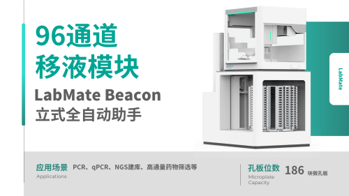 此外,96通道移液模块还能轻松整合到LabMate Horizon台式全自动助手、LabMate Beacon立式全自动助手等更复杂的自动化系统中。