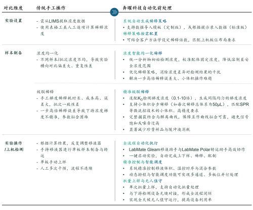 尽管检测设备本身已高度自动化,但样本前处理环节仍大量依赖人工完成,在稀释、配制、转移、上样等步骤中,存在效率低、重复性差、易引入人为误差与批间差异等不足。