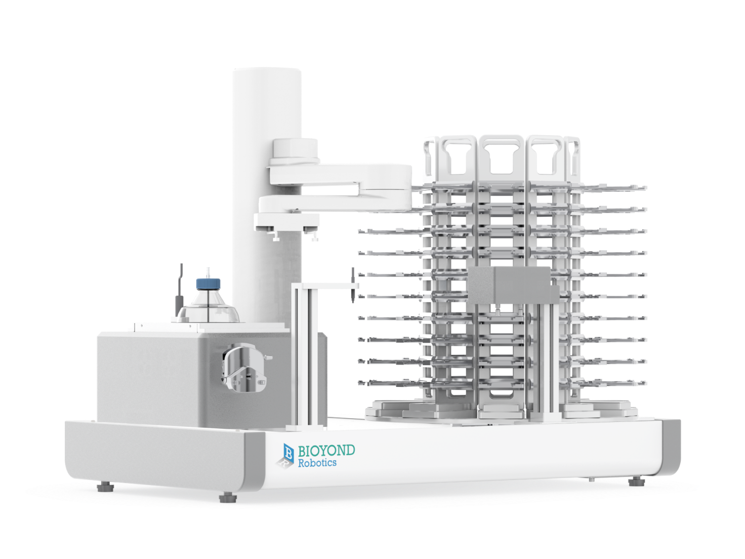 The Mircroplate Reader Mate integrates a microplate detection module, a robotic arm, and hotels. By utilizing stacking and automated plate transfer capabilities, it supports efficient high-throughput testing with microplate readers.