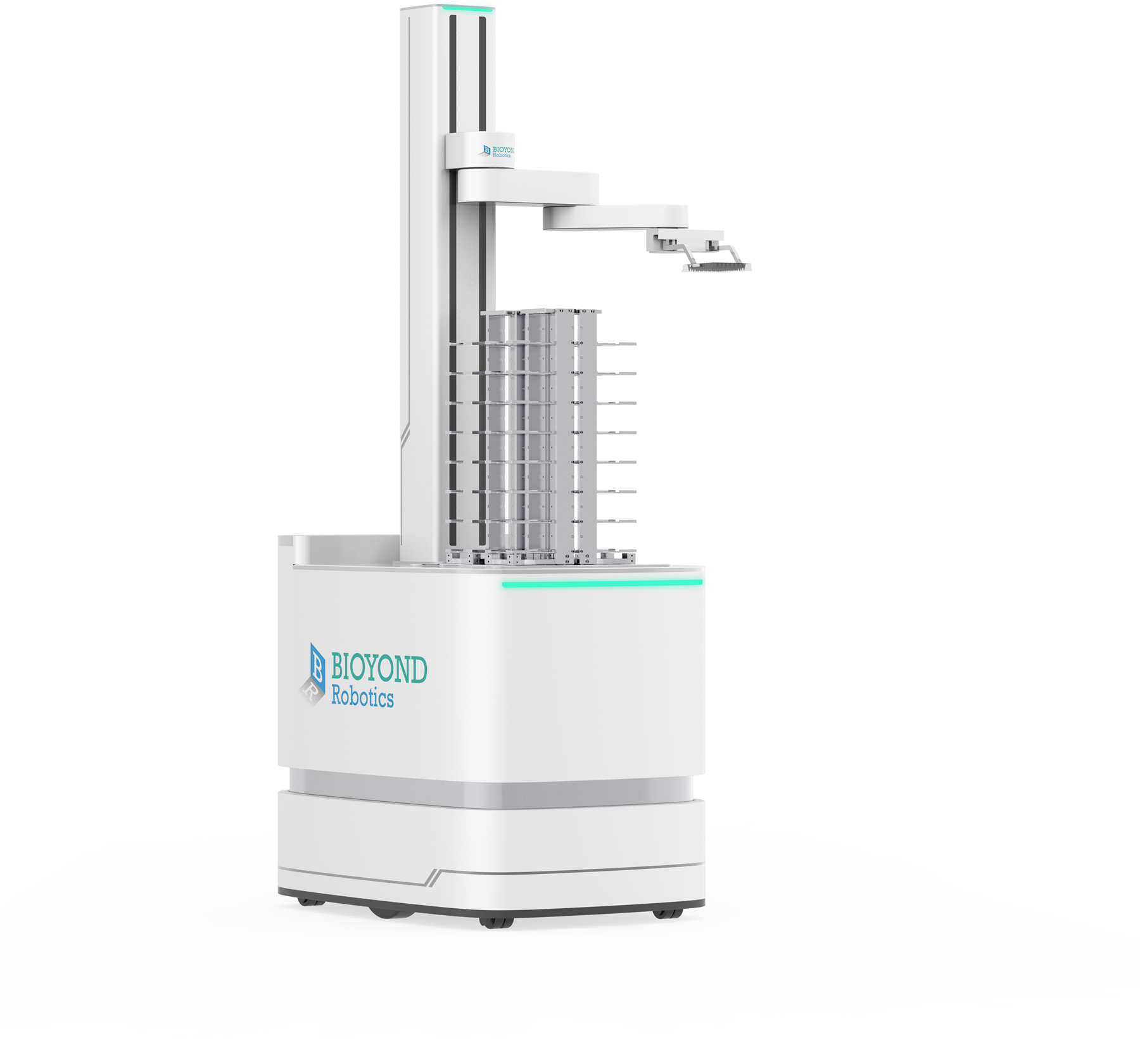 The LabGenius M Series Hybrid Robot is verstaile and intelligent. Featuring proprietary technologies like advanced robot motion control, real-time collision detection, intelligent path planning, error handling, and AI visual perception, it can autonomously perceive its surroundings, detect, plan, navigate, avoid obstacles, and recharge. It efficiently performs tasks such as plate handling, material transport, and loading, enabling long-distance material transfer within and across laboratories.